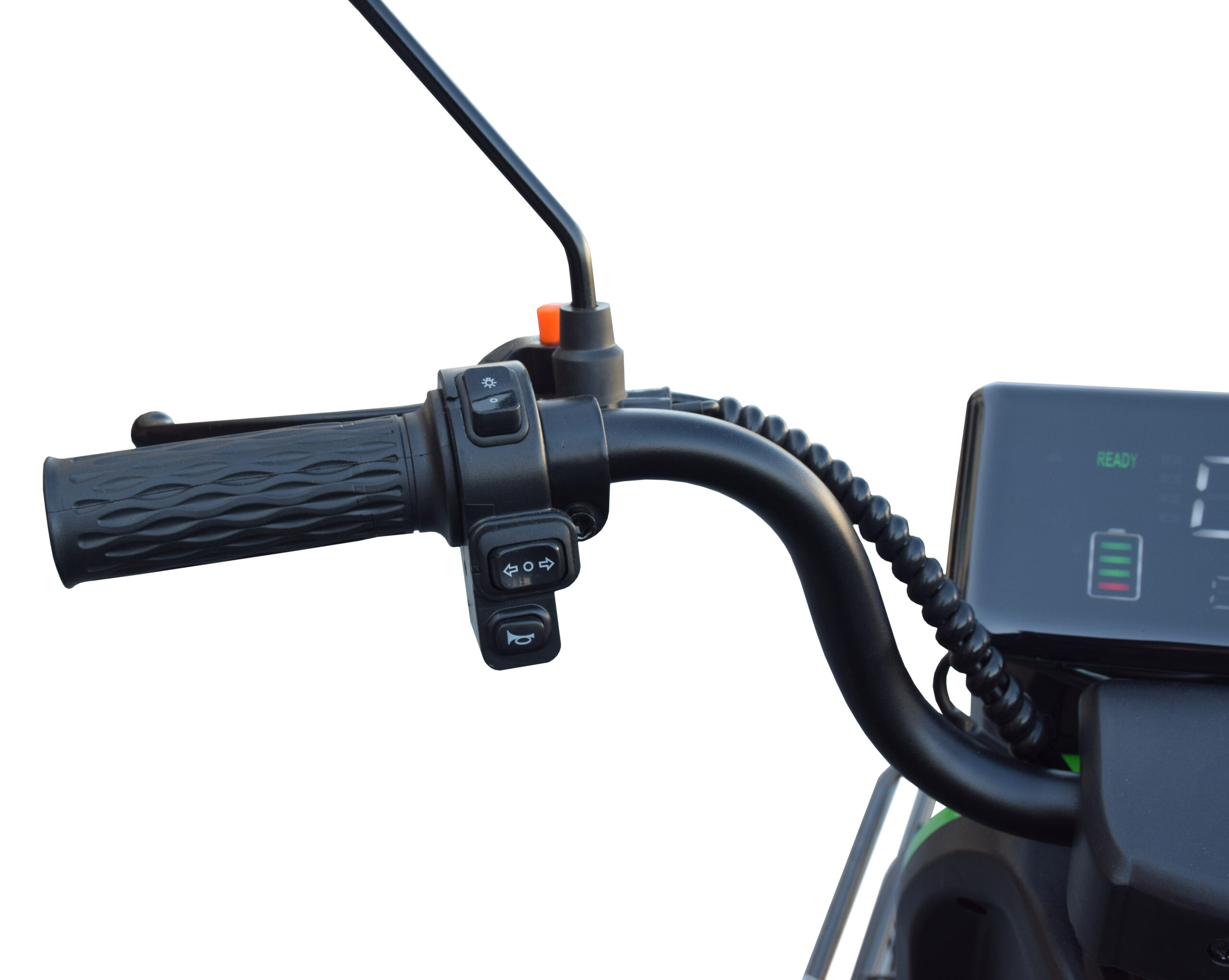 • Siguranță: Far central LED pentru vizibilitate sporită, oglinzi retrovizoare incluse și un sistem de frânare stabil pe cele trei roți.
